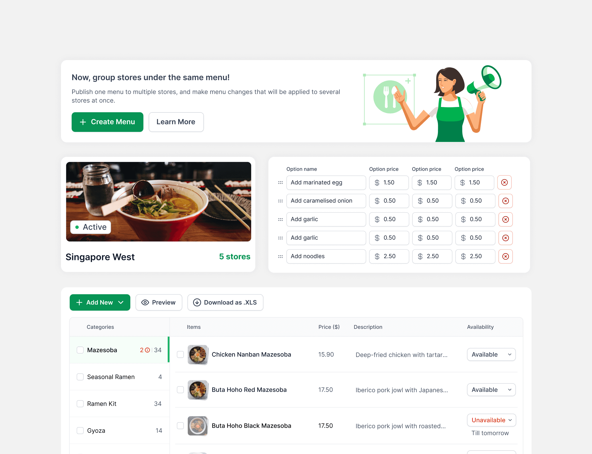 In the second phase we enabled restaurants to link a single menu to multiple stores, making menu editing efficient.